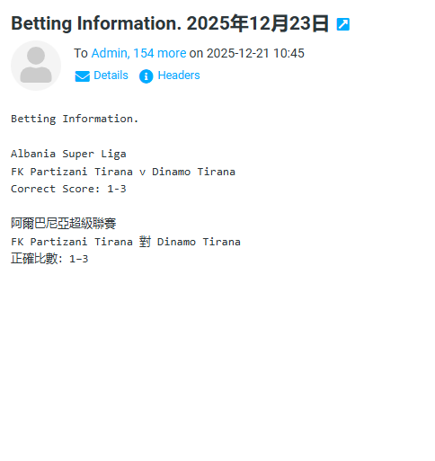 於 2025年12月21日 發送給 154 位郵件名單訂閱者 的電郵截圖: